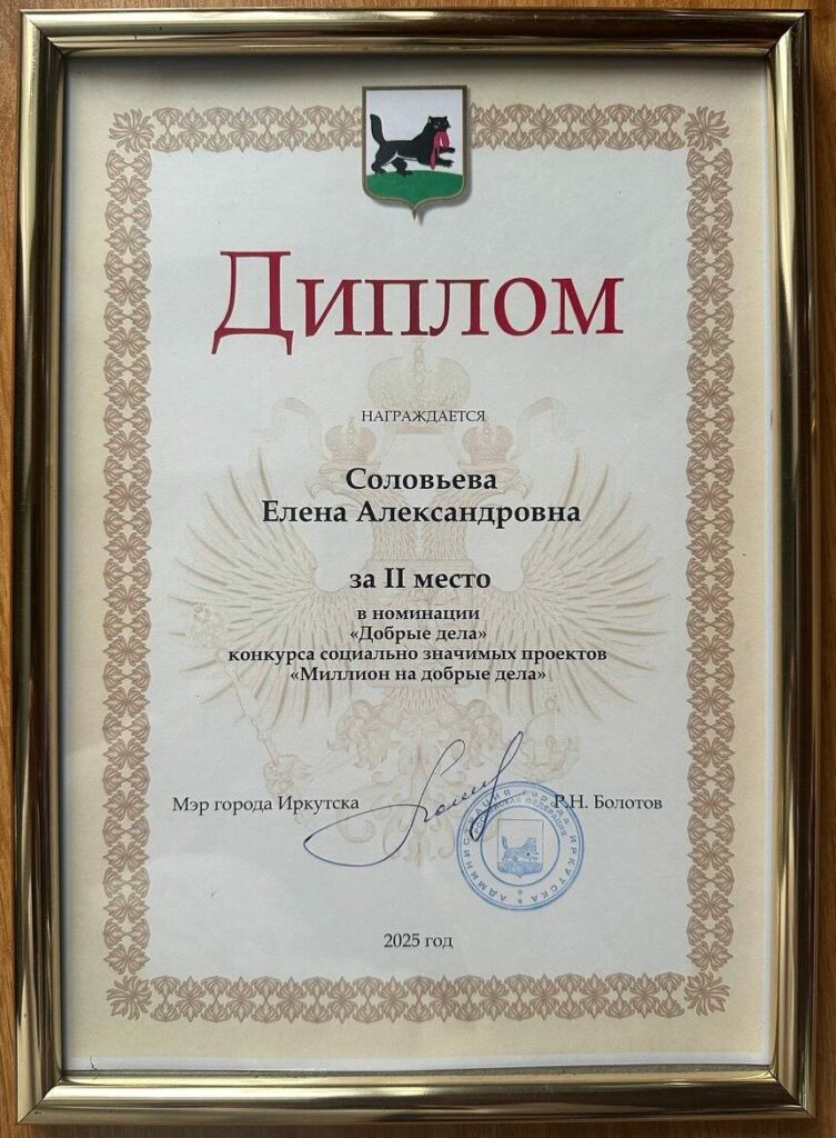Проект «Наставник» занял второе место в конкурсе социально значимых проектов «Миллион на добрые дела» в номинации «Добрые дела». В конкурсе участвовали проекты, направленные на сохранение истории и культурных традиций города Иркутска, благоустройство и озеленение территории, поддержку волонтерства, организацию досуга для иркутян старшего поколения, молодежи и детей, а также проекты, направленные на сохранение семейных ценностей и помощь участникам СВО.