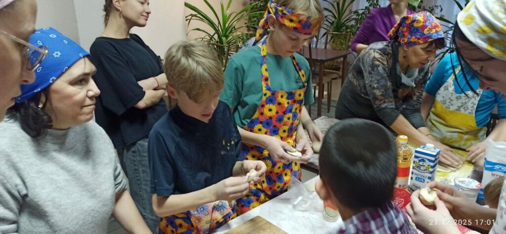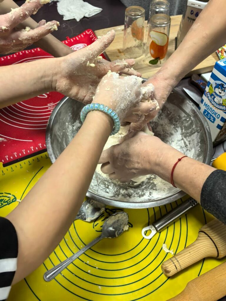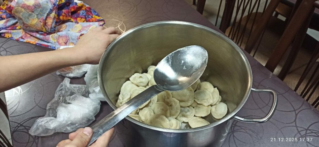 Под весёлые разговоры и смех участники погрузились в процесс: раскатывали тесто, готовили начинку, лепили пельмени. Взрослые делились секретами своих рецептов, как сделать пельмени особенно вкусными, а кто то учился новому и даже впервые в жизни лепил пельмени, но каждый вносил частичку своего тепла в общее дело.